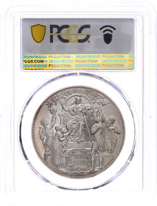 Silbermedaille in 5 Mark - Größe 1889 E. Wettinfeier. Im PCGS-Blister mit Grading SP 62.