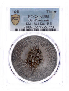 Reichstaler 1641, Stettin. Im PCGS-Blister mit Grading AU 55 (Top Pop, das beste gegradete Ex.).