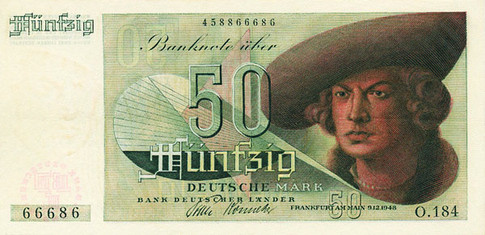 Die Moralapostel nahmen sich sehr schnell des noch 1948 herausgegebenen 5-DM-Scheines an: „Schmutz und Schund“ war die Wertung für den nackten Oberkörper der Europa symbolisierenden Frauengestalt. Außerdem bestand der Verdacht, das komplizierte Linienarrangement, das den Schein fälschungssicher machen sollte, stamme von Picasso, der als Schöpfer der kommunistischen Friedenstaube im Nachkriegs-Deutschland verfemt war.