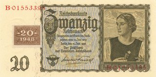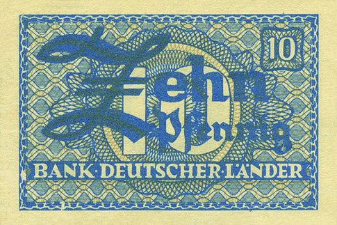 Die 10- und 20-DM-Noten der Bank Deutscher Länder folgten 1949 und schlossen die Neugestaltung der deutschen Markwährung zunächst ab. Diese Scheine sind wieder in Amerika gedruckt und lehnen sich auch wieder an das Dollar-Vorbild an.