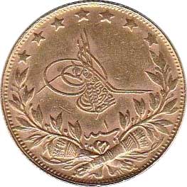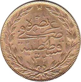 Das Goldpfund in Form einer Standardmünze zu 100 Kurush enthielt somit 6,6147 Gramm Gold. Die Legierung wurde mit 916/000 festgelegt. Die zur Scheidemünze degradierte Medschidije über 20 Kurush enthielt 19,965 Gramm Silber in einer Legierung von 830/000. Wegen der Finanznot im Ersten Weltkrieg lief zu dieser Zeit allerdings fast nur noch Papiergeld um. Gold- und Silbermünzen wurden nur noch in geringen Stückzahlen geprägt.