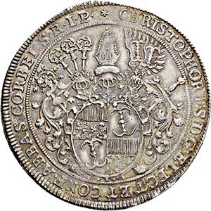 Dieser prachtvolle Corveyer Taler 1686 unter Christoph v. Bellinghausen, die Nummer 114, erzielte 4.400 Euro.