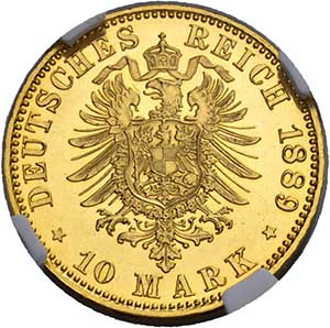 Nr. 363. Preußen. 10 Mark 1889, NGC PF67. Zuschlag 13.000 Euro.