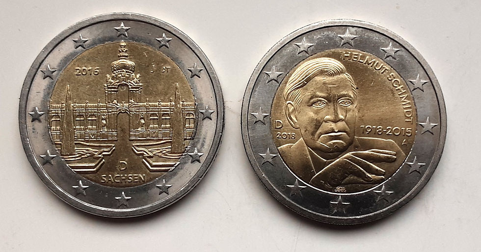 Bodo Broschat besitzt eine Sammlung seiner Belegstücke, ebenso reichlich ist bei ihm kunstgeschichtliche und numismatische Literatur vorhanden, die ihm als Anregung für eigene Entwürfe dient. Mit einigen Zwei-Euro-Stücken aus eigener Produktion wie Schloss Charlottenburg und Bundeskanzler Helmut Schmidt können wir auch im Laden einkaufen.