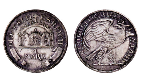 Damit waren das damals in der Planung befindliche, offiziell aber erst durch einen Zusatz vom 19. Mai 1908 zum Münzgesetz von 1873 aus der Taufe gehobene Drei-Mark-Stück und das wegen seiner Größe und Handlichkeit unbeliebte Fünf-Mark-Stück gemeint. Laut Beschluss des Bundesrates erhielt die neue Drei-Mark-Münze wie der alte Vereinstaler einen Durchmesser von 33 mm und wurde im Ring mit der vertieften Randschrift "GOTT MIT UNS" und auf der Rückseite mit dem Reichsadler, der Jahreszahl und der Wertbezeichnung "DREI MARK" geprägt. Über das Aussehen des neuen Nominals gab es keine Vorgaben, nur dass auf der Rückseite der Reichsadler erscheinen sollte und die Prägeanstalten die Herstellungskosten mit 1,1 Prozent erstattet bekommen.