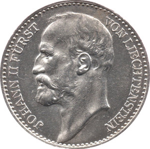 Eine Währungsreform am 26. August 1898 legte den Wert des Florins auf eine Krone fest. Eine Krone setzte sich aus 100 Hellern zusammen. Unter der Herrschaft Johann II. wurden nun Silbermünzen im Wert zu 1, 2 und 5 Kronen sowie Goldmünzen zu 10 und 20 Kronen hergestellt. Im Unterschied zu vorher wies die Vorderseite die – nach links gewendete – Büste des Fürsten auf. Diese Geldstücke hatten bis 1920 Gültigkeit und wurden dann durch Notgeld abgelöst.