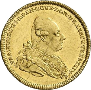 Liechtenstein, 1 Dukat, 1778: Fürst Franz Joseph I., Gold (.986), Gewicht 3,49 g, Durchmesser 22 mm, Quelle: de.numista.com