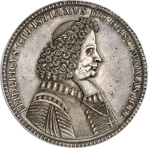 Überraschenderweise wurde keines der zahlreichen Goldmultiplen zum teuersten Stück der Partie Münster bzw. der ganzen Auktion, sondern ein dreifacher Taler. Er stammt von Friedrich Christian von Plettenberg und wurde im Jahr 1694 geprägt. Unter diesem Bischof war das Bistum Münster auf dem Höhepunkt seiner Macht. Friedrich Christian unterhielt ein eindrucksvolles Heer, das ihm genug Spielraum für seine eigenständige Politik verschaffte. Er konsolidierte die Macht des Bistums Münster nach innen und nach außen. Auf Friedrich Christian von Plettenberg gehen nicht nur eine Reihe von Schlossbauten zurück, sondern auch die regelmäßige Straßenreinigung. Sein dreifacher Taler ist von größter Seltenheit und erzielte beeindruckende 60.000 Euro.