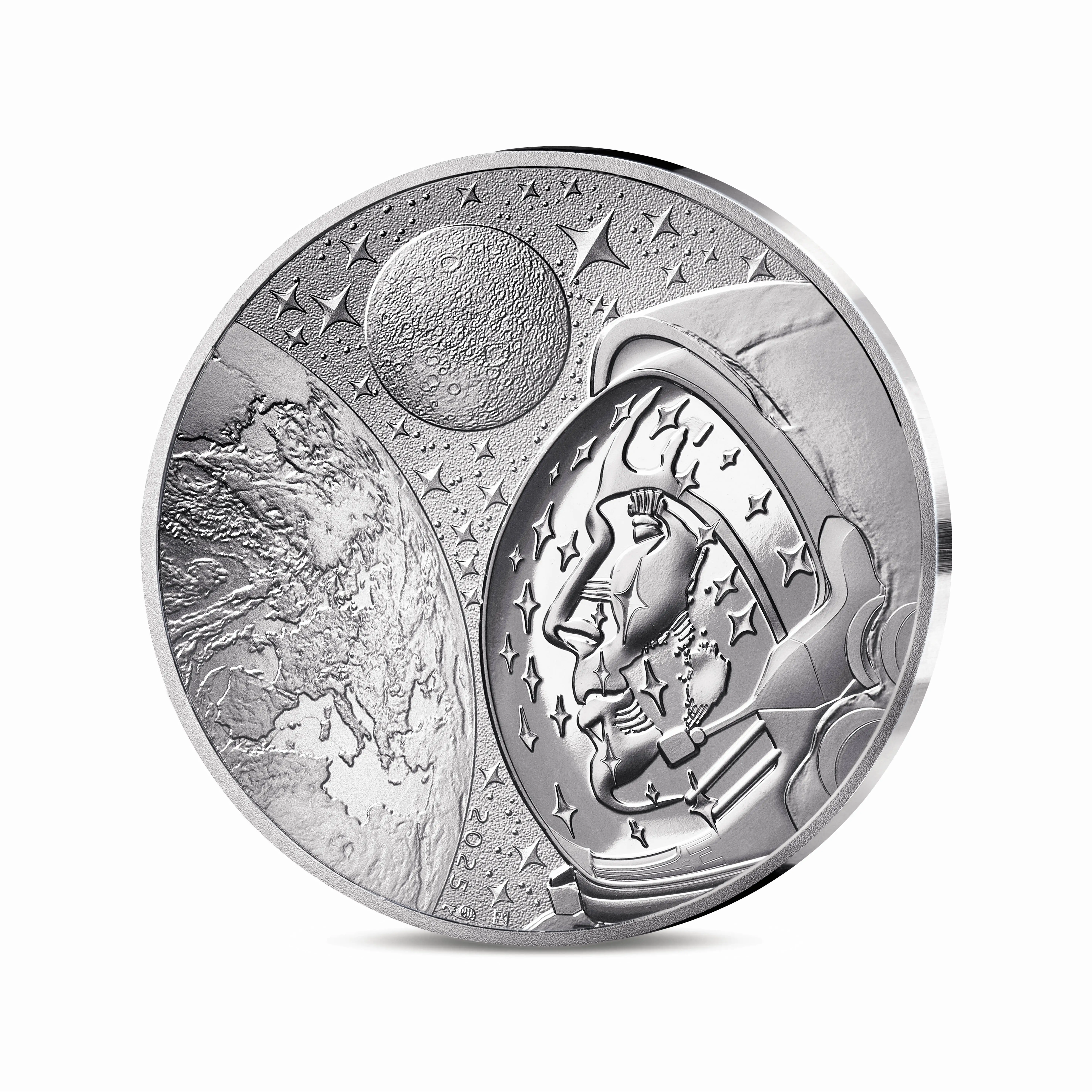 Im Oktober 2025 emittierte Frankreich vier Silber- und zwei Goldmünzen auf den französischen Astronauten Thomas Pesquet und das Thema Weltraum-Odyssee. Thomas Pesquet ist der 10. französische Astronaut und unter diesen der 1. Kommandant der Internationalen Raumstation (ISS). Er unternahm zwei Weltraummissionen mit der ISS, die 1. 2016–2017 und die 2. Anfang 2021. Hierbei gewährte er Einblicke in den Alltag seiner Mission und schoss unzählige Fotos von unseren Planeten, die er mit zahlreichen Interessierten in den sozialen Medien teilte.