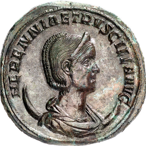 Es ist eines der besterhaltenen Stücke dieser Serie: Der Doppelsesterz der Herennia Etruscilla aus der Sammlung eines Connaisseurs. Der Zuschlag lautete 55.000 Euro, Platz 2 auf unserer Top Five-Liste.