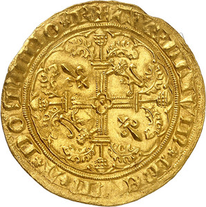 Nr. 95: Frankreich / Aquitanien. Edouard, der schwarze Prinz, 1362-1372. Hardi d’or o. J., La Rochelle. Sehr selten. Vorzüglich bis Stempelglanz. Taxe: 17.500 Euro