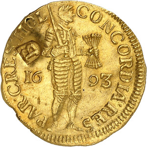 Etwas ganz Besonderes ist der Dukat der Stadt Emden aus dem Jahr 1694. Er gibt nämlich auf der Rückseite an, in welchem Gewicht er hergestellt wurde. Dass die Münze das Gewicht eines ungarischen Dukaten hat, erstaunt erst einmal. Schließlich befand sich das Land erst seit 1687 wieder unter der Kontrolle der Habsburger, und die Osmanen hatten diese Unabhängigkeit noch nicht einmal anerkannt. Doch die Münzstätte von Kremnitz war unter Habsburger Kontrolle. Dort prägten sie Dukaten, die – weil Kremnitz nicht Teil des Reiches war – von der Reichsmünzordnung abweichen durften. Kremnitzer Dukaten hatten einen etwas schlechteren Feingehalt. Emden befand sich nun aber auf Reichsgebiet. Wollte es einen Dukaten mit schlechterem Feingehalt prägen, musste es dies deutlich sichtbar vermerken.