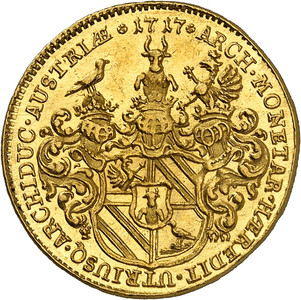 Nr. 512: Österreichische Standesherren. Grafschaft Sprinzenstein. Johann Ehrenreich, 1705-1729. Dukat 1717, Augsburg. Sehr selten. Vorzüglich bis Stempelglanz. Taxe: 17.500 Euro