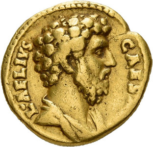 Die beiden Aurei Abb. 4 und Abb. 5 unterscheiden sich nur minimal. Während auf dem Avers des Aureus Abb. 4 der Kopf des Lucius Aelius nach rechts gerichtet ist, ist die drapierte Büste auf dem Aureus Abb. 5 nach links gerichtet. Auf beiden Aurei ist das Kopfprofil nicht rund wie bei dem As Abb. 3, sondern in die Länge gezogen, wie wir es später von Marcus Aurelius, Lucius Verus und Commodus kennen. Laut der „Historia Augusta“, einer zwar unzuverlässigen, aber leider für diese Zeit oftmals die einzige historische Quelle, soll Lucius Aelius wegen seiner Schönheit und seiner Anmut die Gunst Hadrians erworben haben. Diese Schönheit spiegeln zumindest die Münzporträts nicht wider. Der Revers beider Aurei zeigt jeweils die gleiche Personifikation, die auf dem Aureus Abb. 5 auch klar mit Concordia benannt wird. Concordia sitzt nach links gerichtet auf einem thronartigen Stuhl, in der vorgestreckten Linken hält sie eine Patera, eine Opferschale, ihr rechter Arm liegt auf der Thronlehne. Die Füße der Concordia ruhen auf einem niedrigen Fußschemel. Rechts neben dem Thron steht ein Füllhorn. Concordia ist die Personifikation der Eintracht, hier ist sicherlich die Eintracht innerhalb des Kaiserhauses gemeint.