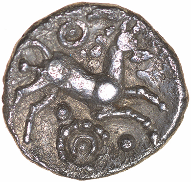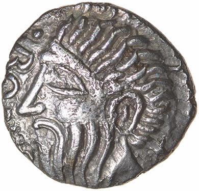 The bearded head on this Boduoc Old Head silver unit, struck by the Dobunni tribe of the West Midlands c.25-5 BC, displays a grave and venerable sage with an air of divinity echoing most closely images of the legendary Roman king Numa Pompilius (r. 715–672 BC), seen on a Roman denarius of 49-48 BC with the same grave expression and long, straight, beard (RCV 1373). This can be no accident: Numa, famously, gave the Romans their calendar, laws, and several state cults and priesthoods, thereby transforming Romulus’ warlike rabble into the makings of a civilized people. Was this how Boduoc also wanted to be known amongst the Dobunni? This excessively rare type (only four others recorded), will be sold in Norwich, 19 May 2024, estimate £3000.