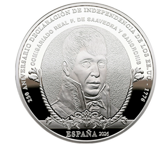 Am 4. Juli 1776 wurde in Philadelphia die Unabhängigkeitserklärung der USA unterzeichnet. Damit gründeten sich die Vereinigten Staaten von Amerika. Aus diesem Anlass emittierte Spanien Mitte März 2026 fünf 10-€- sowie eine 50 €-Münze in Silber- und eine 200-€-Goldmünze. Mit diesen unterstreicht das Land den Beitrag Spaniens am Erfolg des Unabhängigkeitskrieges der 13 amerikanischen Kolonien.