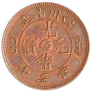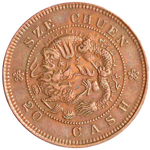 1049, 20 Cash PROBE/PATTERN o.J.(1903/1905) Szechuan Provinz mit Dreizack-Flamme auf dem Drachen unter dem E von SZE. 14,73 g.