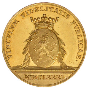 318, Goldmedaille zu 3 1/2 Dukaten 1781 von van Berckel. Huldigung in Namur. 29 mm; 12,21 g.