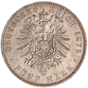 2805, 5 Mark 1875 H. Polierte Platte, etwas berieben, äußerst selten in dieser Erhaltung
