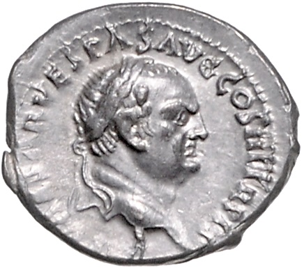 Röm. Reich, Vespasian mit Titus und Domitian Denar (71 v. Chr.), Ephesos. Prachtexemplar, Vorzüglich. Schätzpreis: 4.200,00€