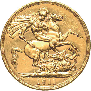 George V. 1910-1936. 2 Pounds 1911. 15.95 g. Spink 3995 Friedberg 403 Schlumberger 544 GOLD. Selten.