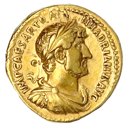 ROM. Hadrianus (117–138). Aureus COS III = 119/127. Drapierte belorbeertes Brustbild nach rechts, Umschrift: IMP CAESAR TRAIAN HADRIANVS AVG. Rückseite: Roma thront nach links, hält Victoriola,